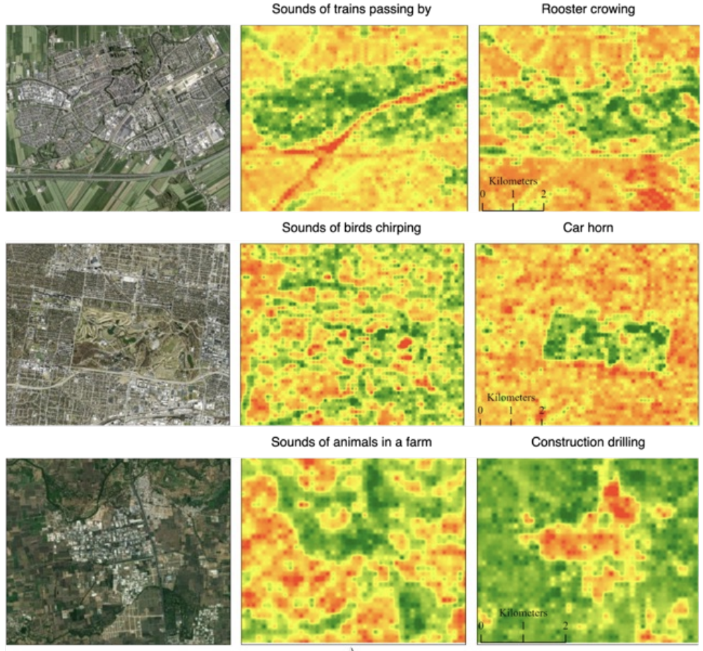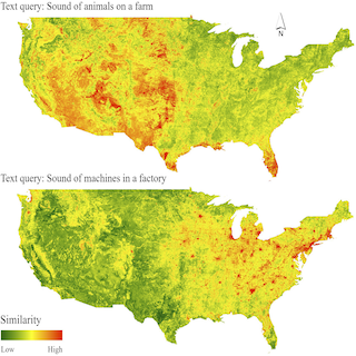 We learn a tri-modal embedding space between audio, text and overhead imagery. This enables us to create soundscape maps over any geographic region, using either audio or textual queries.
