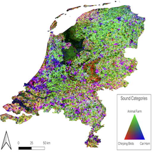 We develop a probabilistic, multi-scale, and metadata-aware embedding space that connects audio, text, and overhead imagery. This enables the creation of dynamic, multi-scale soundscape maps for any geographic region, along with uncertainty estimates for the mapping.