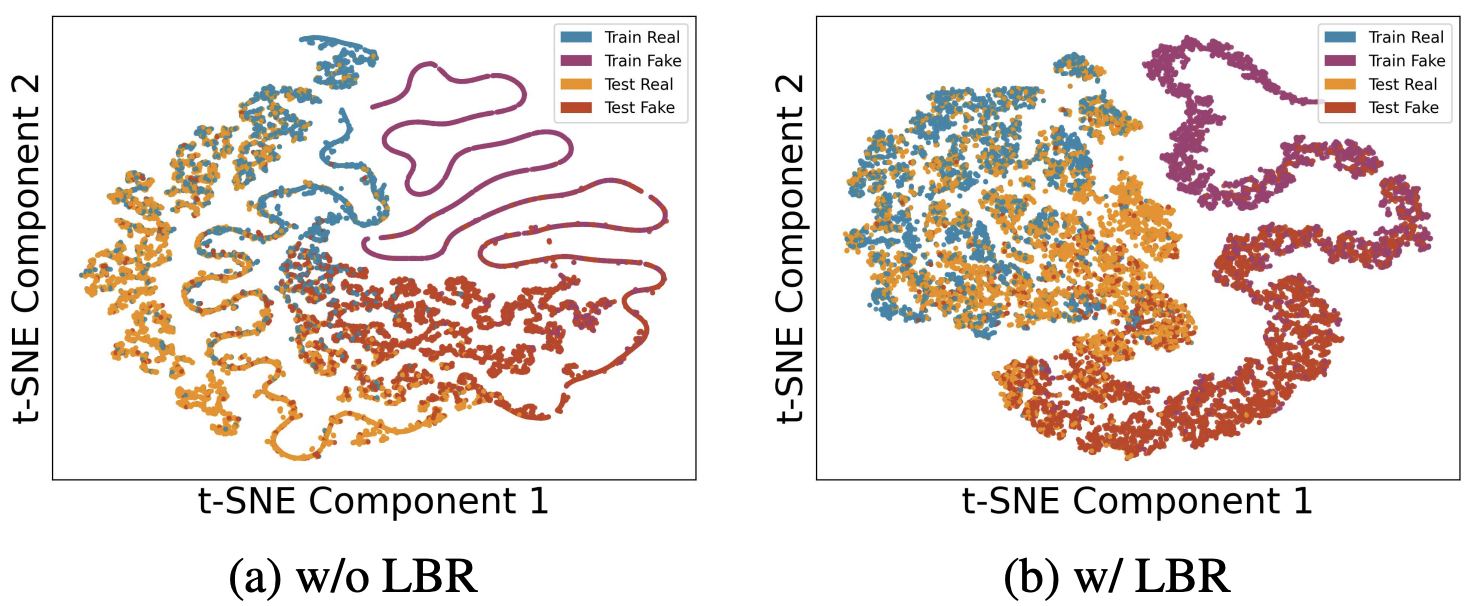 SimLBR is a simple and efficient framework for fake image detection using Latent Blending Regularization (LBR). By learning a tight decision boundary around the real image distribution and treating the fake category as a sink class, it significantly improves cross-generator generalization, achieving up to +24.85% accuracy and +69.62% recall on the challenging Chameleon benchmark.