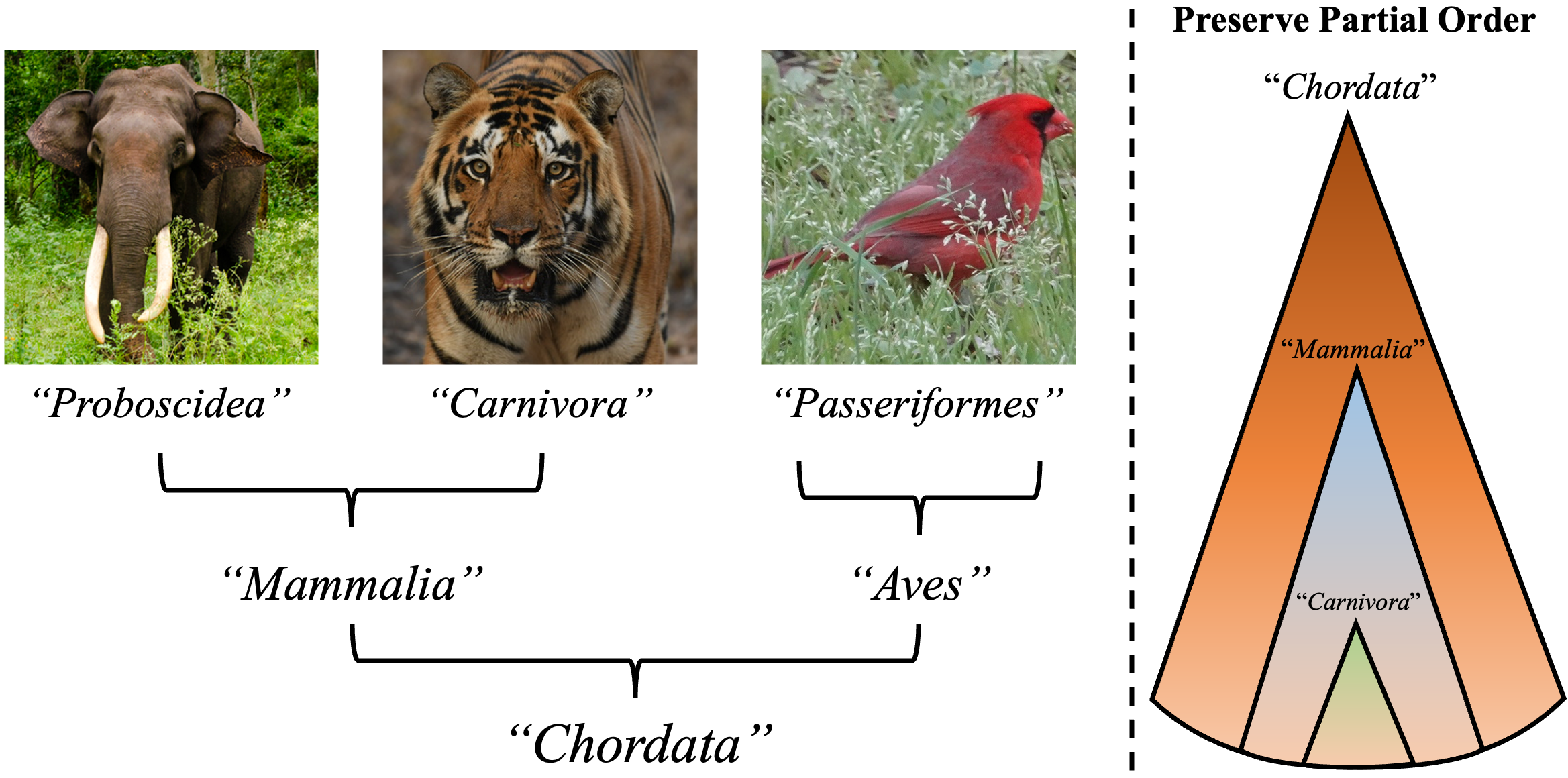We introduce Radial Cross-Modal Embeddings (RCME), a framework for learning hierarchical vision-language representations that explicitly models transitivity-enforced entailment. Applied to the Tree of Life taxonomy, our model achieves state-of-the-art performance on hierarchical species classification and image-text retrieval tasks.